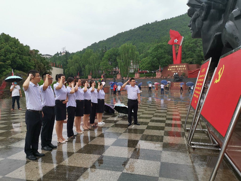 7月1日,公司党支部组织全体党员干部冒雨前往红色教育基地-苍溪县红军渡缅怀革命先烈,回顾红色历史,听取先辈们的光辉事迹,并重温入党誓词。